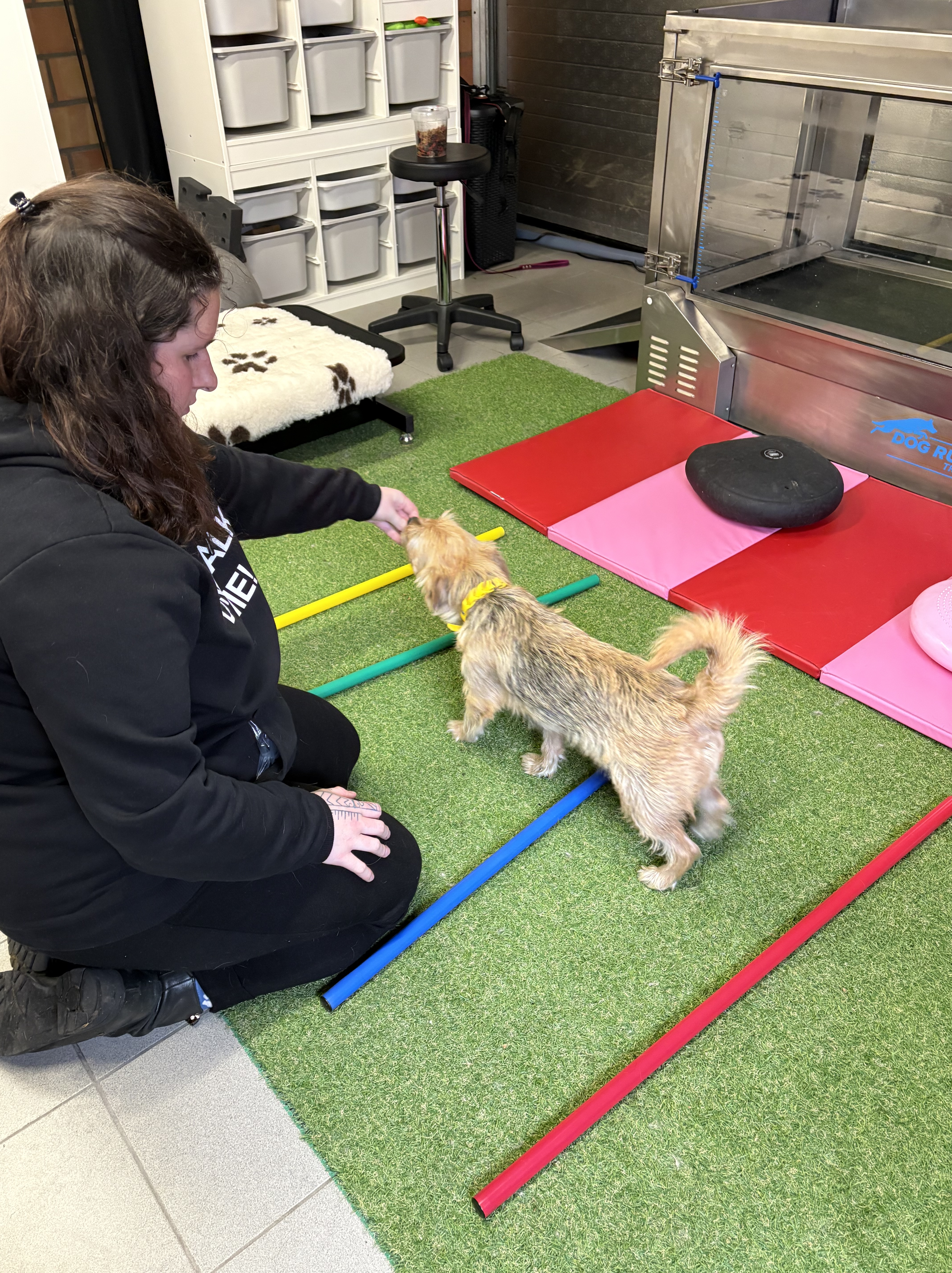 We werken stap voor stap, op een tempo dat prettig is voor uw dier. Alles gebeurt onder begeleiding, met veel beloningen en positieve aanmoediging. Zo wordt bewegen niet alleen nuttig, maar ook leuk.